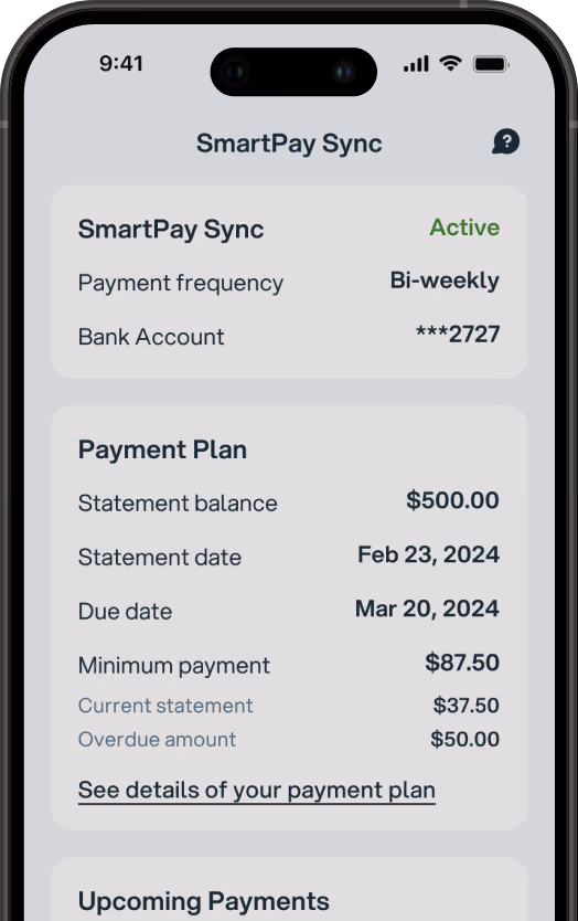 SmartPay Sync learns when you get paid and schedules your payments automatically — so your bill is always covered when you have the funds.