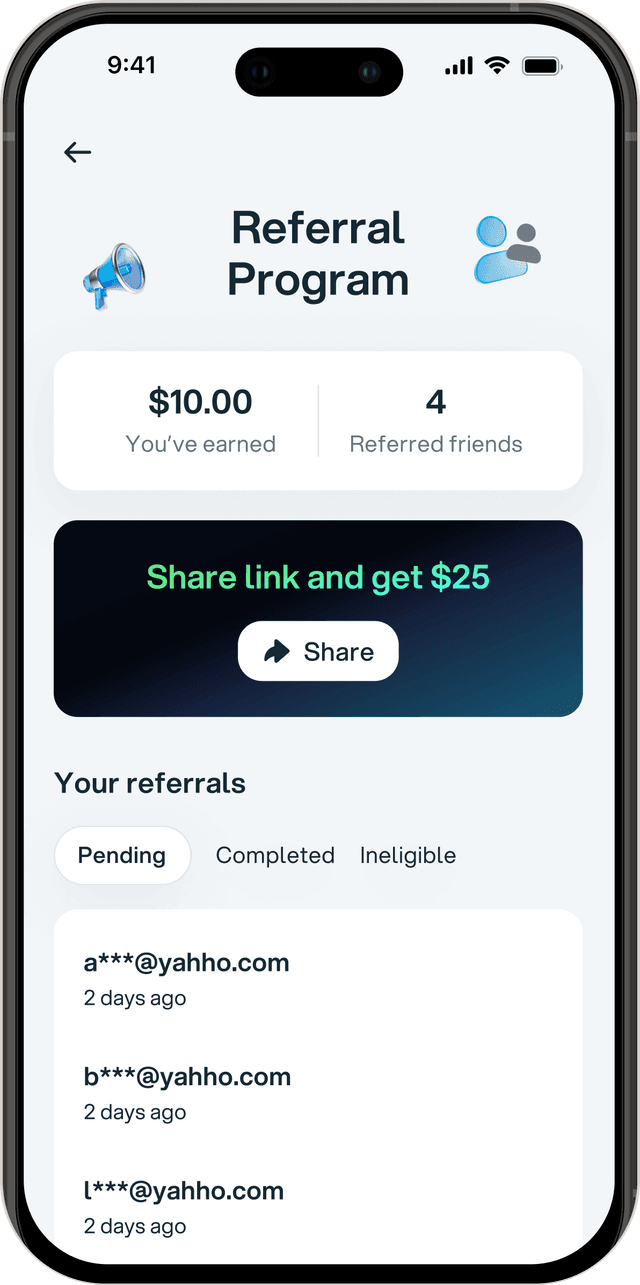 Grab your unique referral link directly from the Earna app and share it with friends via text, email, or social media.